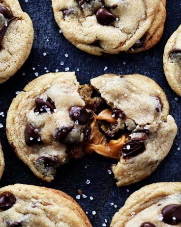 Salted Caramel Stuffed Chocolate Chip Cookies