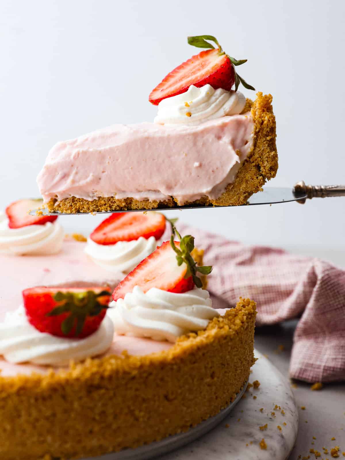 I actually think the trickiest part about this cheesecake bar recipe is cutting the bars into neat squares! The bars are easiest to cut straight from the fridge and when you use a hot knife. (See the tips below!) This recipe makes about 9 larger squares or 12 smaller squares.