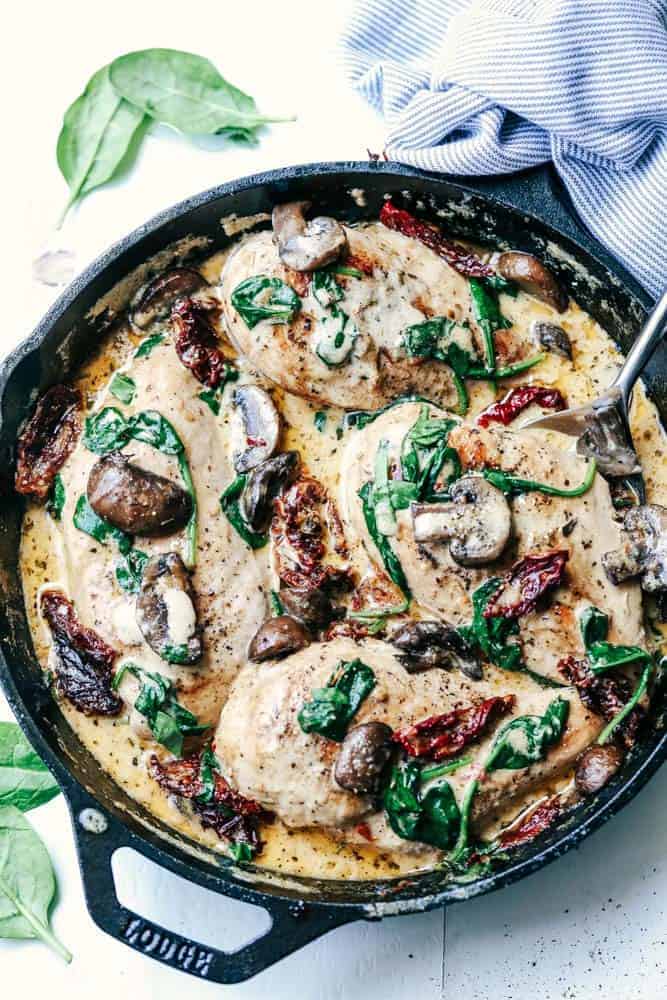 Skillet Creamy Chicken Mushroom Florentine
