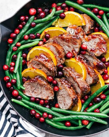 Roasted Cranberry Orange Pork Tenderloin with Green Beans